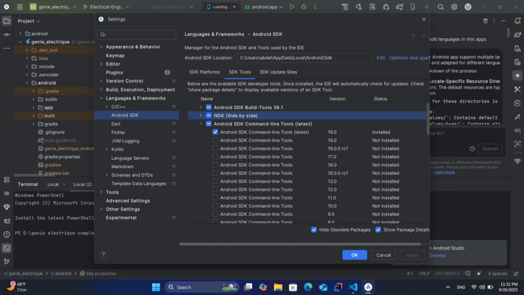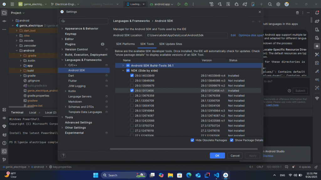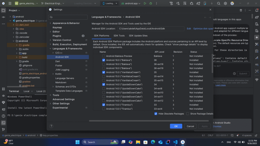 قم بتحديث Android SDk كما في الصور