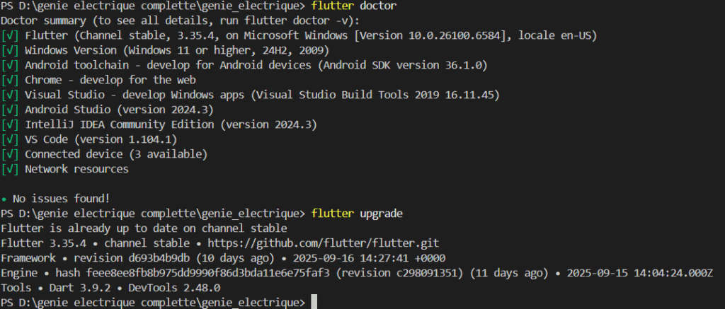 تحديث فلاتر الى اخر اصدار Flutter 3.35.4